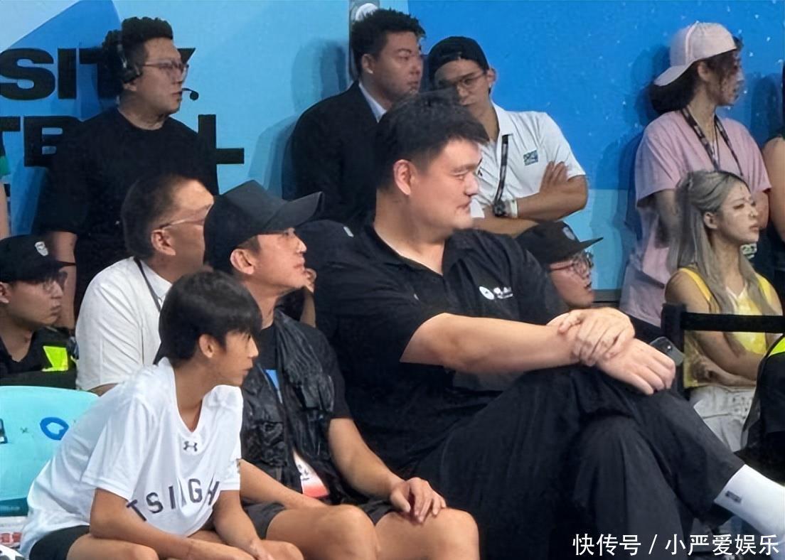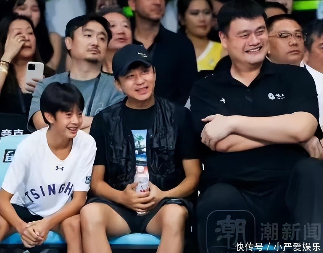 2025年8月24日晚,邓超带着等等观看AUBL亚洲大学生篮球联赛。父子两人同框出现,邓超头戴黑色棒球帽,身穿黑色T恤和短裤,外搭黑色马甲。等等穿着白色T恤和黑色短裤,两人坐在前排,与姚明邻座。照片显示邓超将胳膊搭在等等肩上,两人交谈大笑,姿势一致。等等13岁时身高已直追父亲,瘦高身材突出,五官与孙俪相似,尤其笑容时眉眼部分。姚明与邓超体型对比明显,姚明高大,邓超相对匀称,等等坐在中间,显示出青春期生长速度。